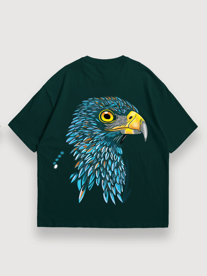 Command attention with the “Apex Vision” tee. This piece showcases a stunning, hyper-detailed portrait of a majestic raptor, rendered in electric blues and fiery oranges. A large, breathtaking graphic dominates the back, while a smaller, refined version sits on the chest. It’s a powerful symbol of focus, freedom, and seeing the world from a higher perspective. For the leader, the visionary, and the one who soars above the rest.