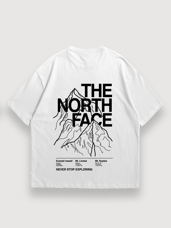 Answer the call of the summit with the “Exploration Blueprint” tee. This design pays tribute to the spirit of adventure, featuring a classic logo on the chest and a stunning, technical line-art graphic of the Everest massif on the back. It’s more than a shirt—it’s a statement for every explorer at heart who lives by the mantra: Never Stop Exploring.