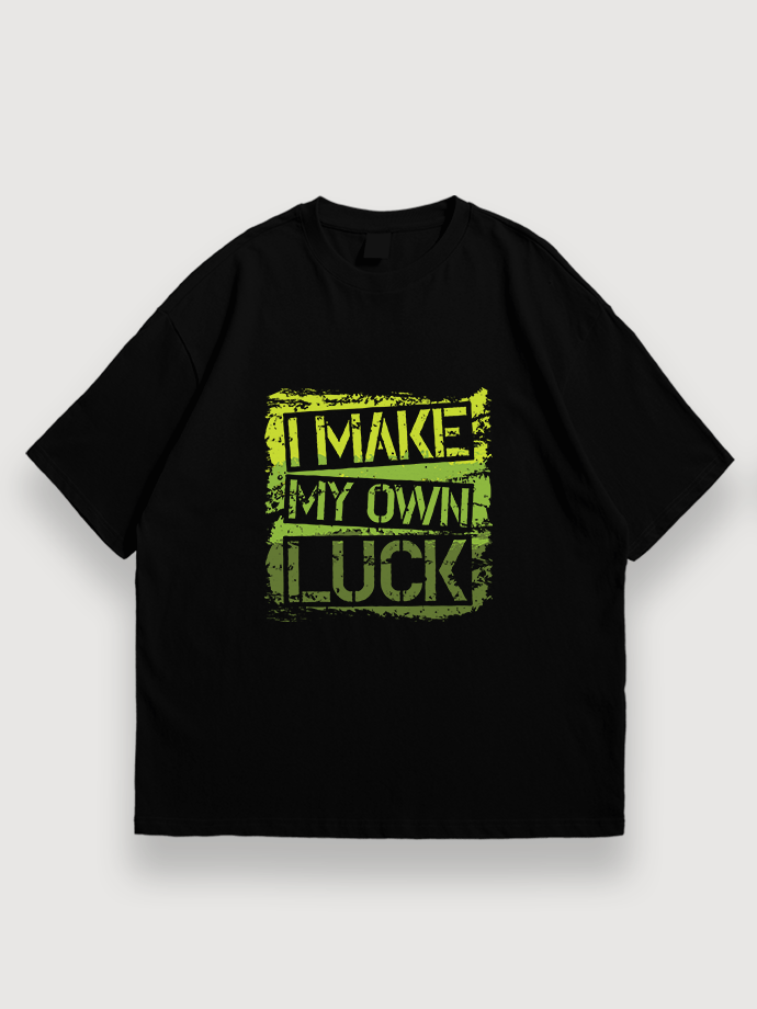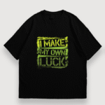 Destiny isn’t found, it’s forged. The “Forge of Fate” tee is a powerful statement of self-determination, featuring the bold declaration ‘I Make My Own Luck.’ Rendered in a gritty, distressed stencil font with a radioactive green gradient, this design has a raw, urban energy. It’s the perfect anthem for the hustler, the creator, and anyone who believes in willpower over wishful thinking. Don’t wait for luck; create it.
