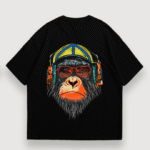 Tune out the noise and vibe to your own frequency. The “Primal Beats” tee features a super-chilled chimp on the back, fully immersed in his music with retro headphones and stylish shades. This vibrant, detailed portrait is a tribute to staying in your own lane. The front offers a unique, vertical ‘AESTHECHIC MONKEY’ text placement for a touch of minimalist cool. It’s the ultimate shirt for music lovers and style connoisseurs.