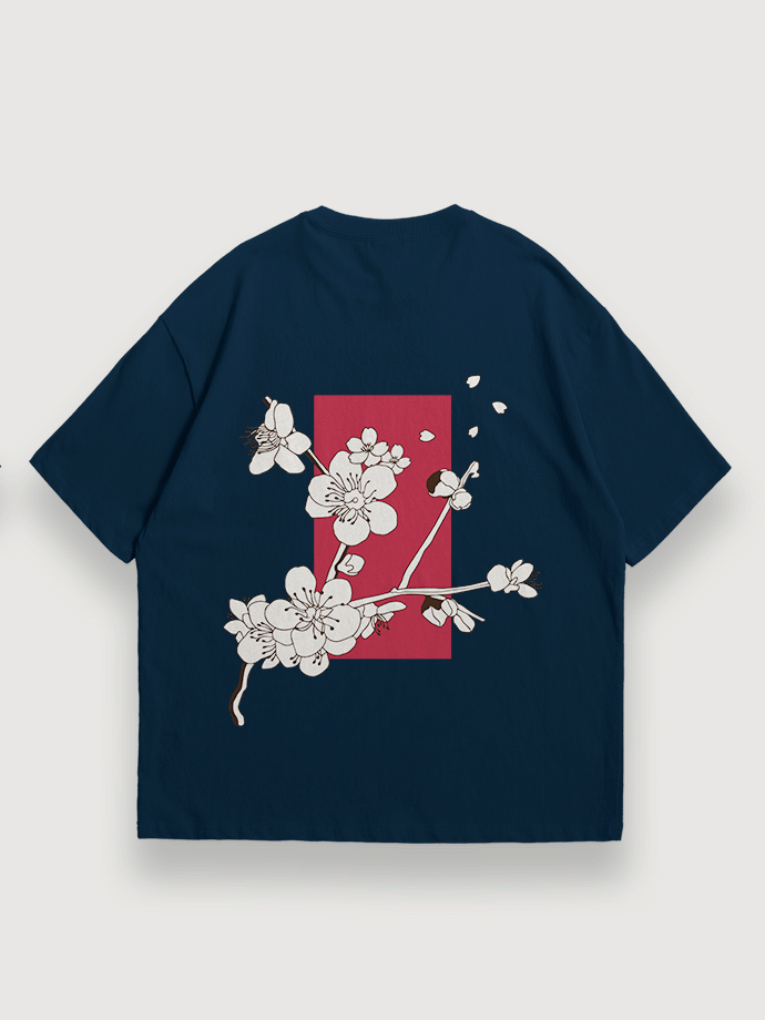 Embrace a moment of poetic beauty. This elegant design features a clean, minimalist ‘AESTHECHIC’ logo on the front, setting a tone of modern sophistication. The back unfolds into a stunning illustration of a blooming sakura branch, a timeless symbol of transient beauty, framed against a bold red accent. It’s the perfect harmony of classic Japanese art and contemporary graphic design, created for the modern connoisseur.